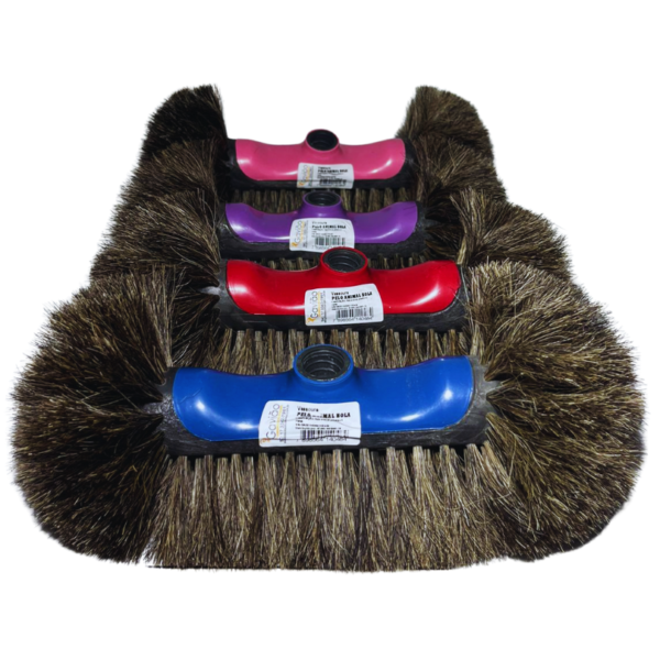 Vassoura Pelo Animal Bola, uma super vassoura, produzida com cepo plástico e crinas de animal, tem uma longa durabilidade e não arranha as superfícies. Uso interno